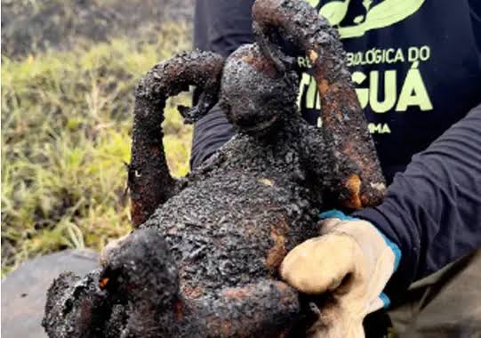 Neste sábado, 14 de setembro, um bicho-preguiça carbonizado foi encontrado pelos bombeiros após um incêndio na Baixada Fluminense, na região de Nova Iguaçu, Rio de Janeiro. O animal foi resgatado por brigadistas do Instituto Chico Mendes de Biodiversidade (ICMBio) que atuaram na área afetada pela queimada.