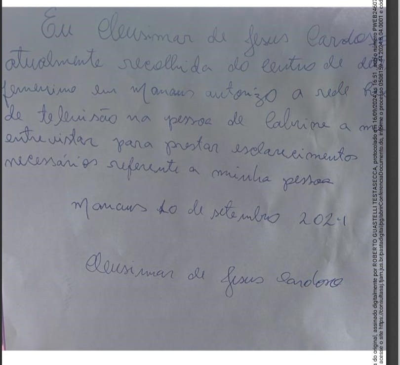 A autorização para a entrevista, escrita à mão por Cleusimar em um documento datado de 10 de setembro, foi recebida com grande expectativa. “Quero prestar esclarecimentos à sociedade sobre a minha pessoa”, afirmou a mãe em sua carta.